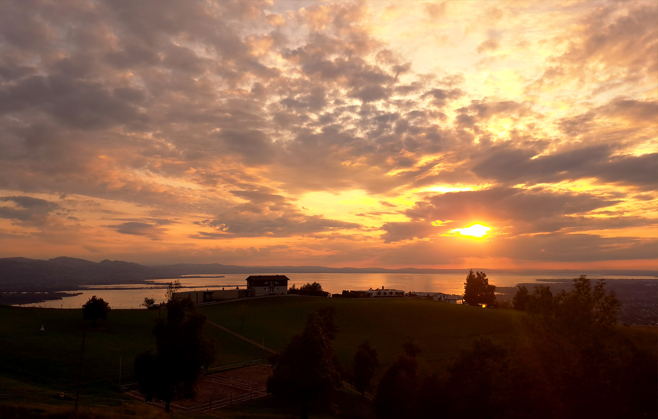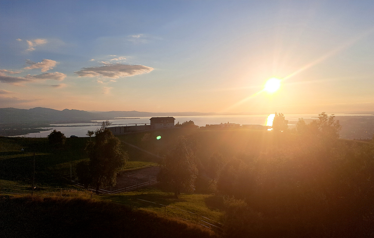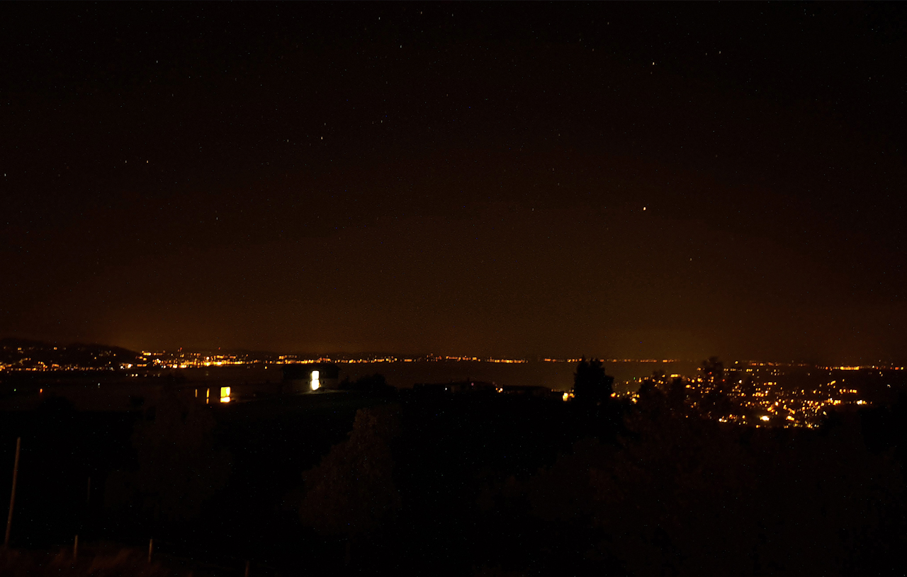 Spiegelung der beinahe mondän anmutenden Lichterkette der Schweizer Küste im See